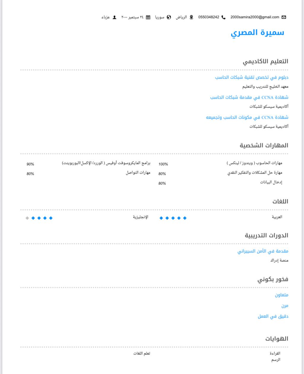 أنا خريجة دبلوم تقنية معلومات تخصص شبكات "في حال توفر شاغر وظيفي لديكم أرجو التواصل معي، سواء دعم فني أو عمل اداري أو تدريس في مدينة الرياض