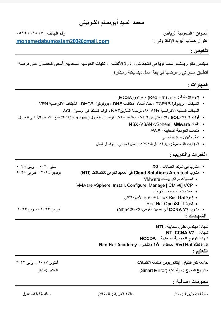 مهندس شبكات مصري - يبحث عن فرصة عمل في مجال الشبكات ك IT أو system Admin أو help office متوفر معه إقامة قابلة للتعديل لمدة سنة بالمملكة العربية السعودية متواجد حاليا بمدينة الرياض