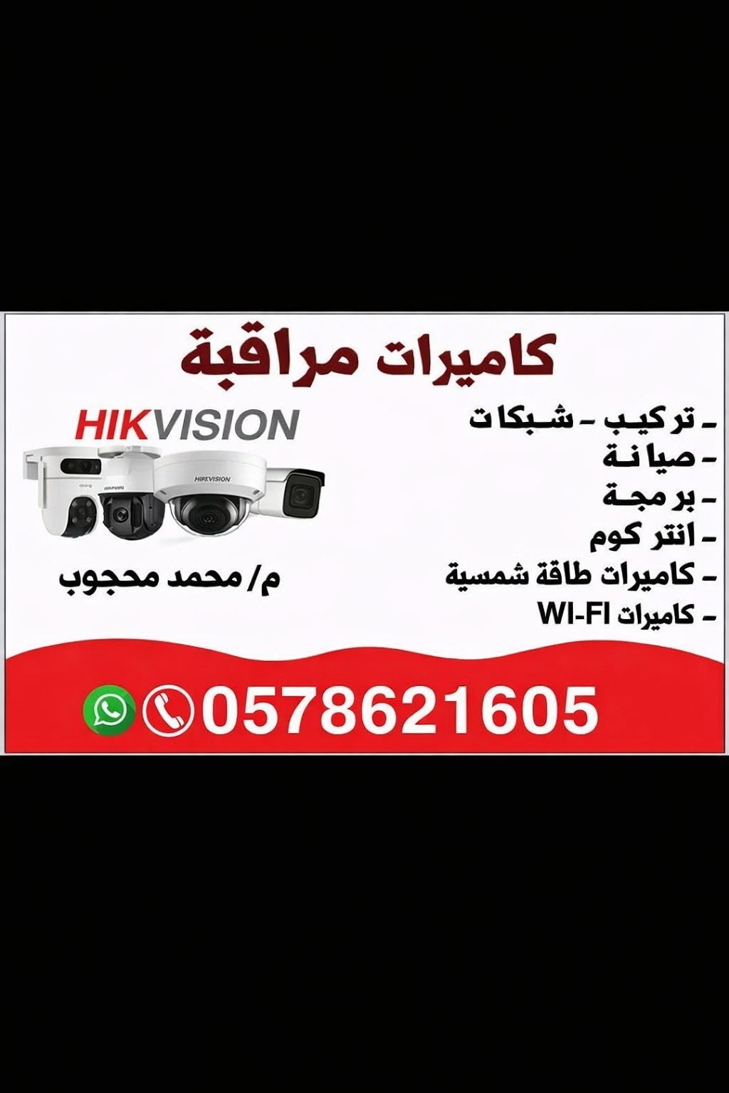 مهندس شبكات خبرة ميدانية وأنظمة أمنية واحترافية عالية هل تبحث عن مهندس متخصص يجمع بين الخبرة النظرية والتطبيق العملي في مجال الشبكات وأنظمة المراقبة أقدم خدمات هندسية احترافية تشمل تصميم تنفيذ ودعم حلول الاتصالات المتكاملة تصميم وتنفيذ بنية تحتية للشبكات الداخلية (LAN (WiFi - تركيب وبرمجة كاميرات المراقبة بنوعيها IP (Analog اعداد وتهيئة اجهزة التسجيل DVR / NVR