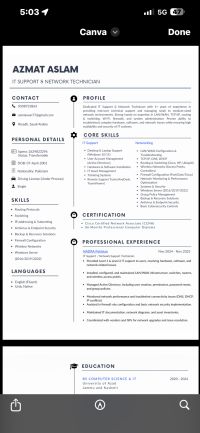 Find attached my CV for the position of IT support/ Network Technician. I have experience in IT support, networking, and system troubleshooting, along with CCNA knowledge. I would appreciate the opportunity to discuss how my skills can support your team. Thank you for your time and consideration. Best regards, Azmat Awan