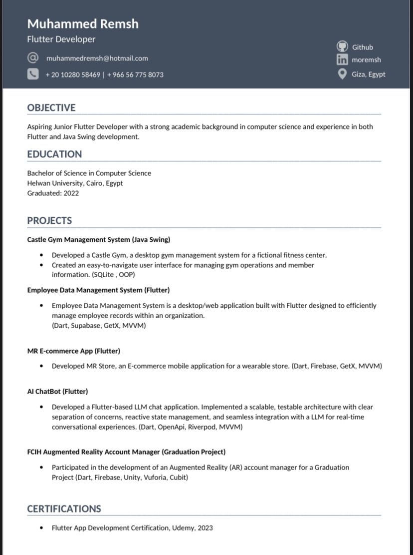 Junior Flutter developer located in Al Qassim, Unizah available for relocating familiar with state management (GetX, Bloc, Riverpod) looking for intern/ junior position