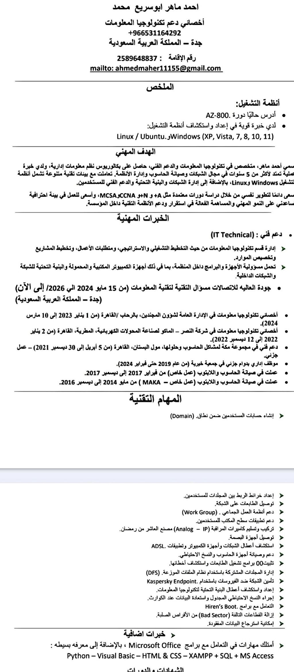 مهندس it خبرة بفضل الله 8 سنوات مجال الشبكات وأمن المعلومات والبنية التحتية والله بقالي 5 شهور في البيت من غير شغل بالله عليكم لو حد يقدر يساعدني أكون شاكر ليه جدا والله الموضوع صعب ولا شغل دا رقمي اللي عنده أي مساعدة يتواصل معيا