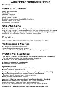 Network Engineer with 4 years of experience in designing, implementing, and managing network infrastructure efficiently. I have experience in configuring routers and switches, managing servers, securing networks, and monitoring performance and resolving technical issues quickly and accurately. I am seeking a professional opportunity where I can contribute my technical expertise and support system stability