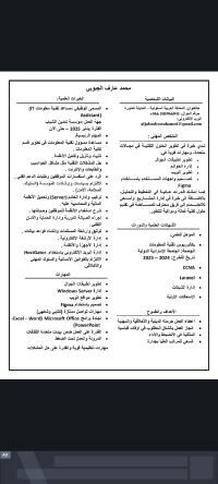 حديث التخرج بشهادة البكالوريوس في تقنية المعلومات من جامعة الامارات الدولية، واعمل حاليا كمساعد تقنية معلومات في مؤسسة تمكين للتنمية. امتلك خبرة عملية في دعم المستخدمين، إدارة العاملات منزليات (Windows Server) تركيب الأنظمة المحاسبية والمالية، وحل المشكلات التقنية للاجهزة والطابعات والشبكات