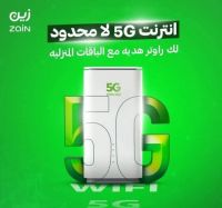 عرض على باقات الانترنت المنزلي 5G انترنت لا محدود بدون استخدام عادل مع راوتر مجاني بسعر ممتاز فقط 239 ريال شهريا شامل الضريبة التوصيل مجاني لباب في خلال ساعة
