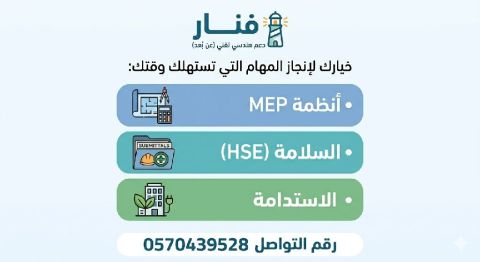 أنظمة MEP جداول مقارنة عروض الأسعار (Technical Comparison) تجميع كتالوجات المعدات، وحصر الموردين. السلامة (HSE) اعداد سجلات المواد (SDS) خطط السلامة، وجداول التوعية اليومية (Toolbox Talk) الاستدامة تعبئة نماذج التقييم (LEED / مستدام) الخ