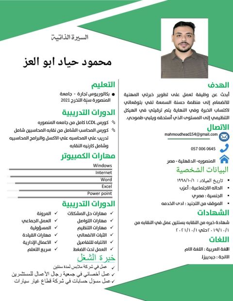 أنا خريج كلية تجارة شعبة محاسبه ابحث عن عمل محاسب أو مدخل بيانات أو كاشير أو بائع أو أي عمل اداري