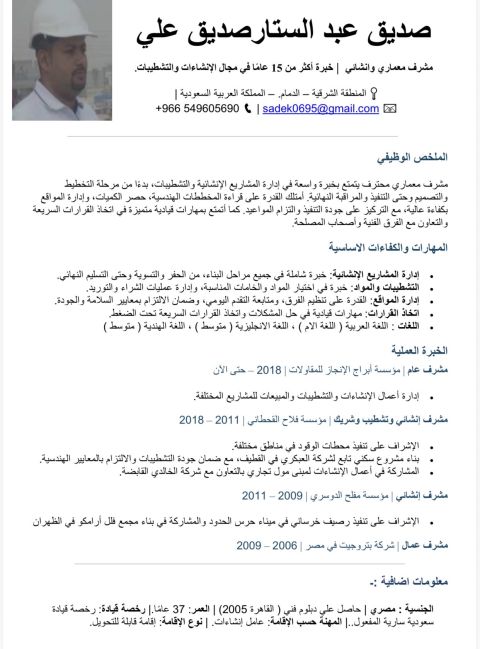 مشرف عام خبرة حوالي 18 عام في المقاولات وموجود رخصة سعوديه