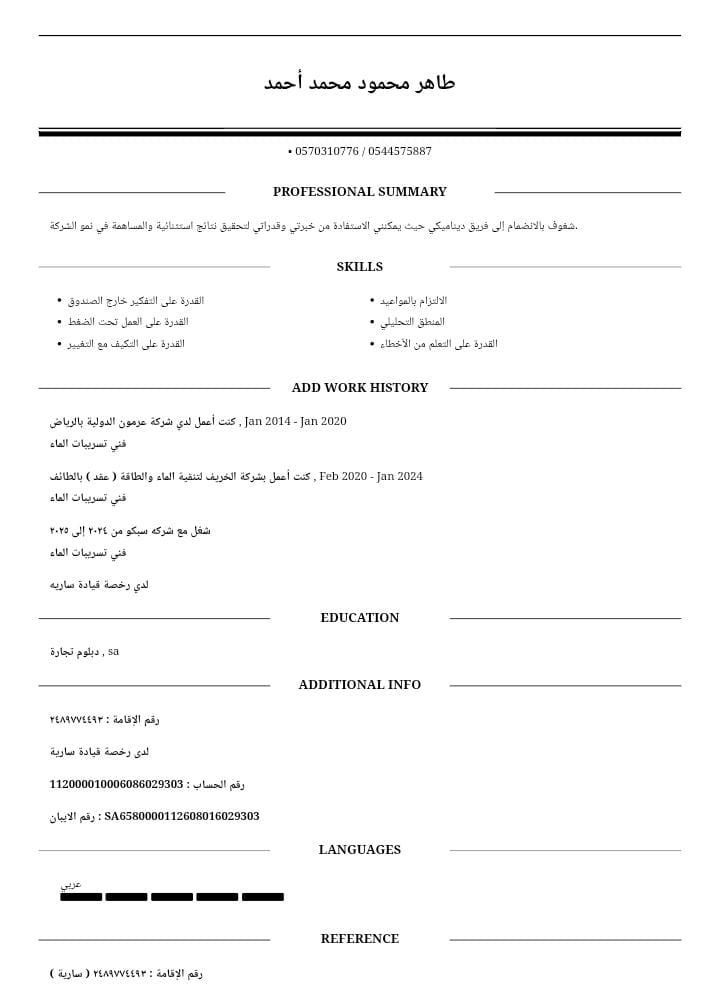 مراقب كشف التسريبات الغير ظاهرة والتعديات لشبكات المياه خبرة من 2014 حتى الآن