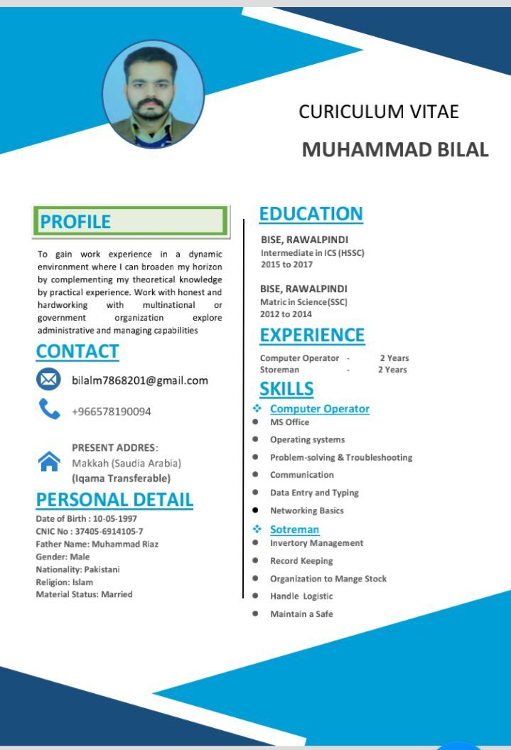 I need a job, my Iqama was expired, any kind of job, helper, and my experience is as a computer operator and storekeeper