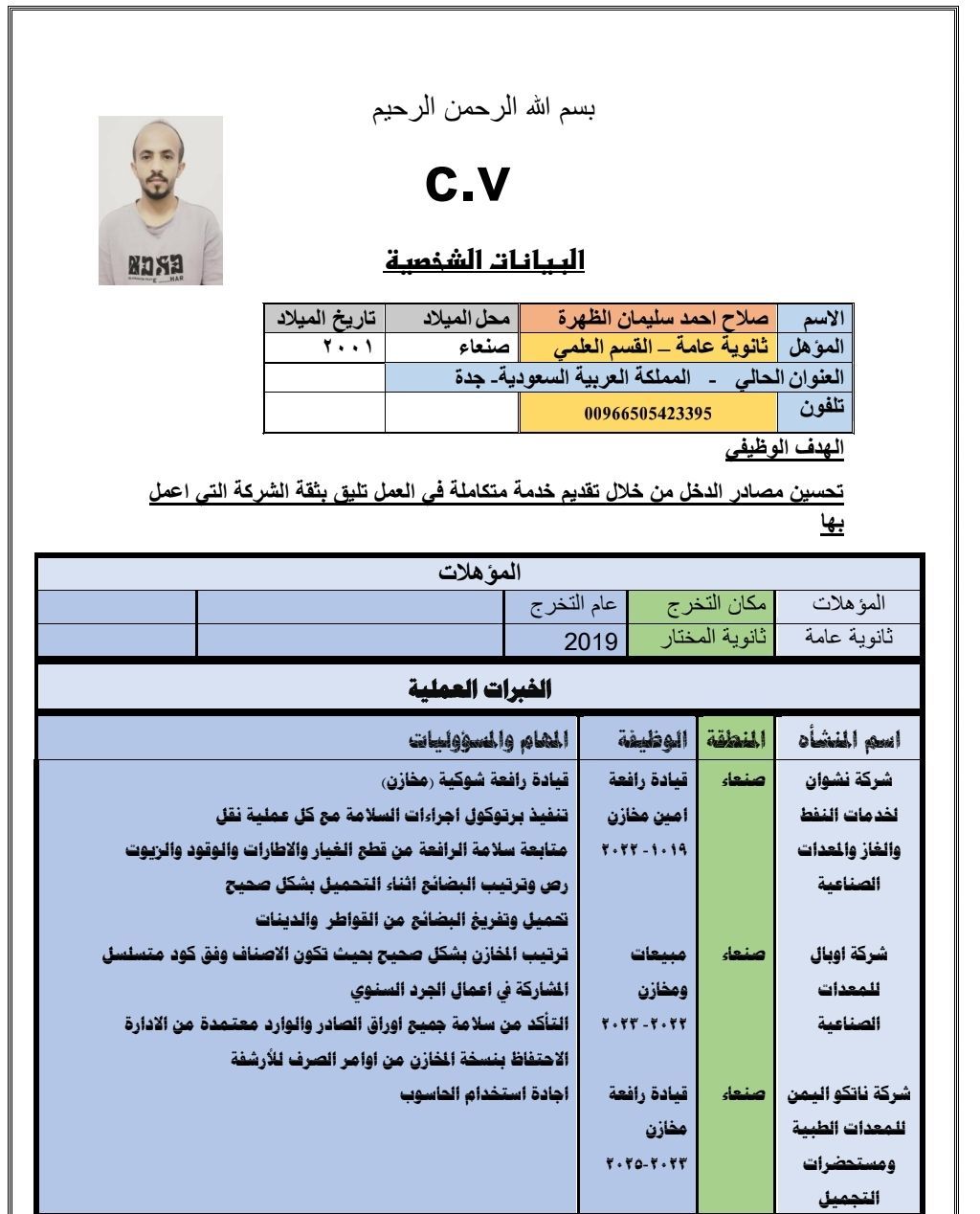 I am looking for work in any field. My CV details my previous work experience Warehouse Clerk Loading and Unloading Goods In shops or shopping centers Forklift Operator (Knife)