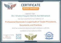 د. خالد سيد عبد العال محمد مصري محامي نقض مستشار قانوني ومحكم معتمد بخبرة تتجاوز 25 عاما في التحكيم الدولي وتسوية المنازعات صياغة العقود التجارية والمدنية المعقدة التدقيق القانوني للعطاءات والمناقصات الاستشارات القانونية للشركات والمؤسسات الترافع وتمثيل العملاء أمام المحاكم وهيئات التحكيم تعزيز أنظمة الامتثال والحوكمة القانونية مستشار قانوني ومحكم دولي في مكاتب محاماة في مصر وسلطنة عمان