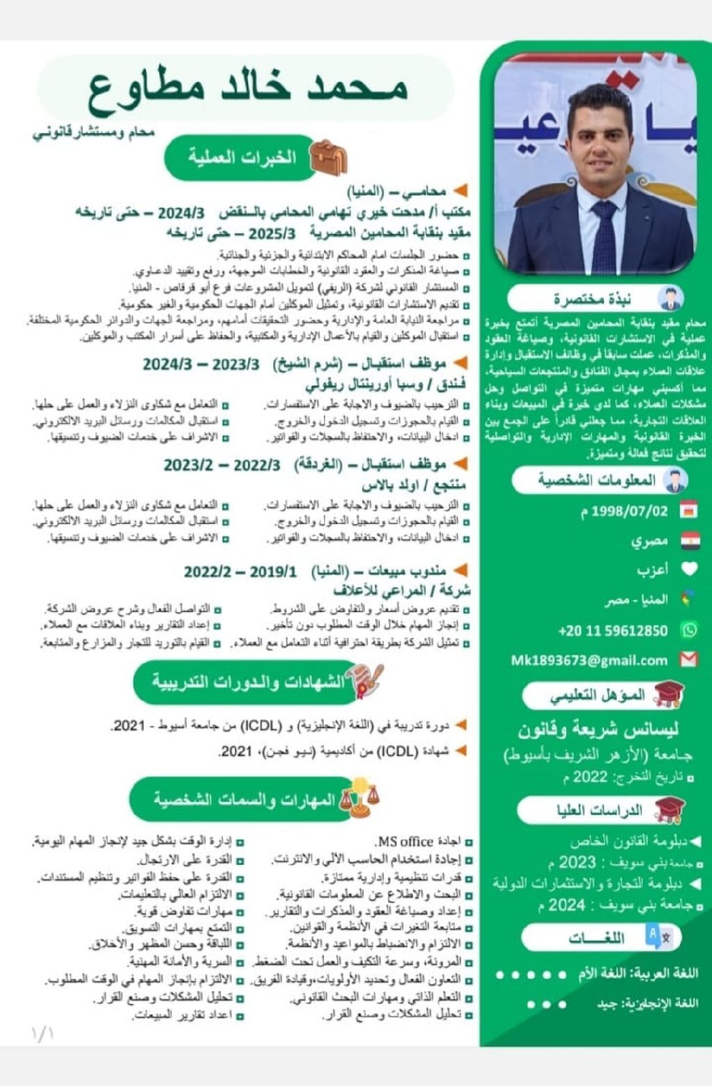 ابحث عن فرصة عمل ك سكرتير قانوني / موظف اداري أملك من الخبرة سنتين في مجال المحاماة في مصر أجيد استخدام برامج المايكروسوفت أوفيس مهارات ممتازة في تخزين الملفات والأرشفة وتنظيم المواعيد والتعامل مع الموكلين الالتزام التام بالمواعيد والأنظمة متواجد في جدة وارحب في العمل في أي مدينة داخل المملكة