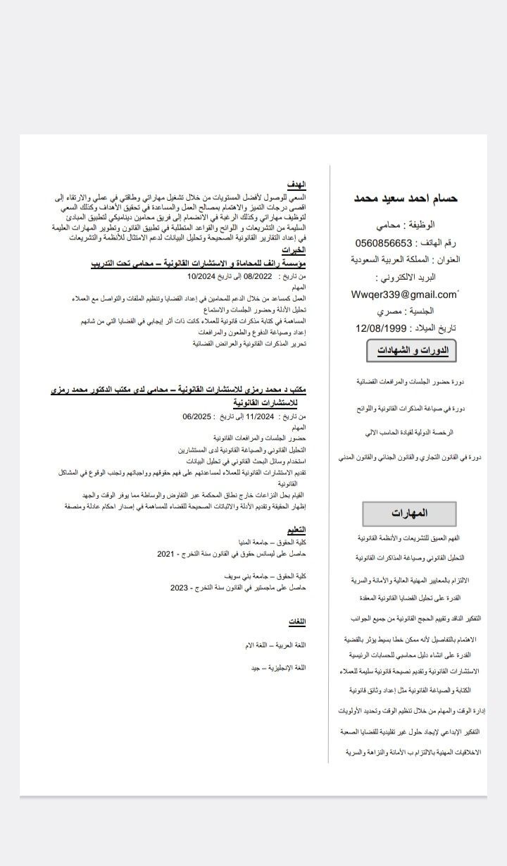أريد العمل في مجال المحاماة كنت اعمل سابقا في شركة مقاولات وكنت اعمل تاجر وبياع في محل اجهزة وأمين مخازن وفي المحاماة