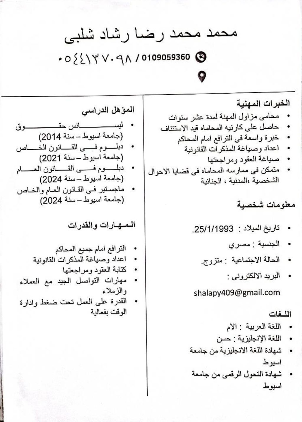 ابحث عن عمل حاصل على ليسانس حقوق وماجستير في القانون ابحث عن مكتب أو شركة محاماة أجيد عمل المذكرات وكتابة العقود ومراجعتها