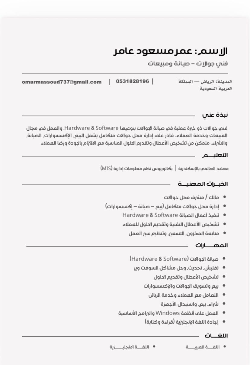 Software/ Hardware فني جوالات لديه خبرة عملية في صيانة الجوالات بنوعيها. سبق لي إدارة محل جوالات متكامل شمل البيع، الأكسسوارات، الصيانة، الشراء والاستبدال، مع القدرة على تشخيص الأعطال وتقديم الحل المناسب (لدي خبرة أكثر من 10 سنين في جميع موديلات) الأعطال وتقديم الحل المناسب للعميل