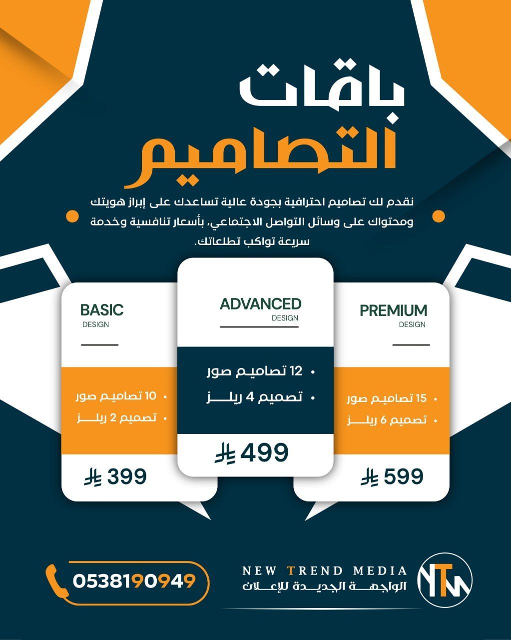 نقدم لك تصاميم احترافية بجودة عالية تساعدك على ابراز هويتك ومحتواك على وسائل التواصل الاجتماعي، بأسعار تنافسية وخدمة سريعة تواكب تطلعاتك