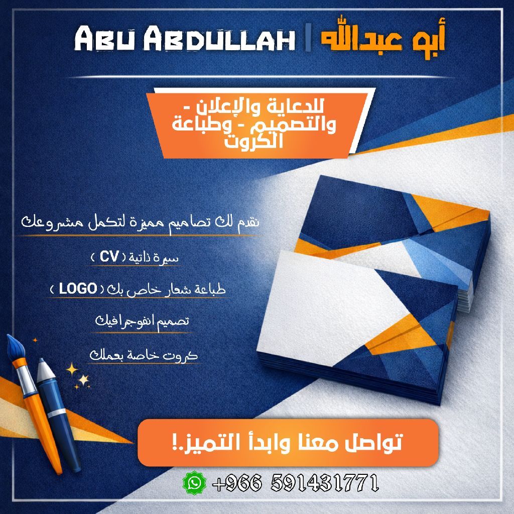 أبو عبدالله للدعاية والاعلان تصميم لوجو - سيرة ذاتية - كروت تعريفية - بطائق تهنئة - دعوات عامة