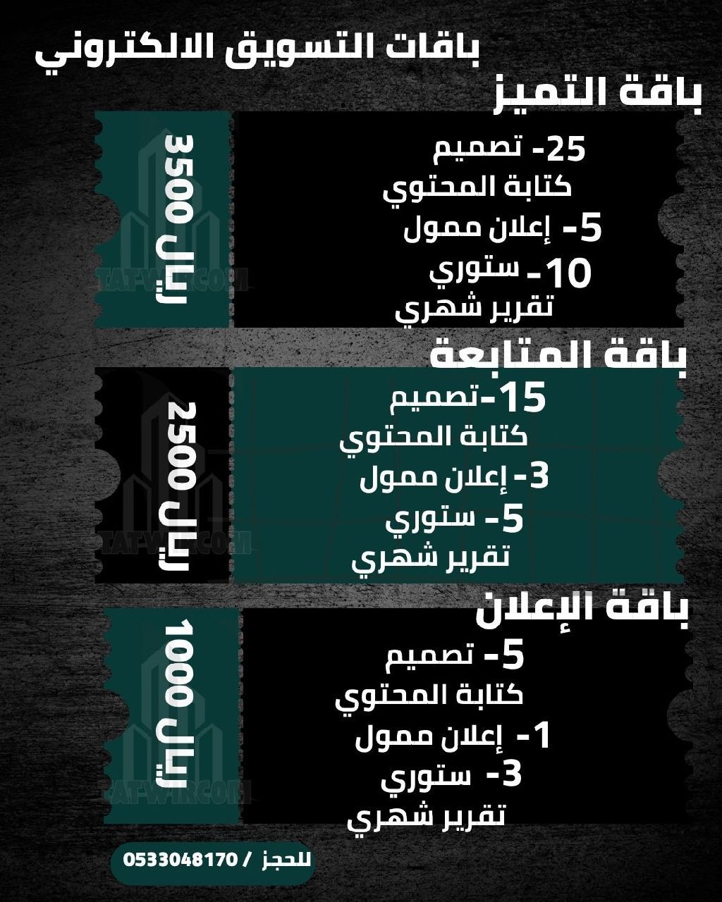 شركة Tatwircom Agency متخصصة في التسويق الرقمي وإدارة الحملات الاعلانية، نركز على تحويل حسابات السوشيال ميديا الى مصدر عملاء فعلي وزيادة المبيعات من خلال استراتيجيات مبنية على الأداء والنتائج. نقدم لك إدارة حسابات السوشيال ميديا بشكل احترافي تصميم محتوى تسويقي جاهز للنشر كتابة محتوى موجه حسب نشاطك وجمهورك إدارة الحملات الاعلانية (Meta - TikTok - Snapchat - Google) تحسين مستمر للحملات لخفض ألت