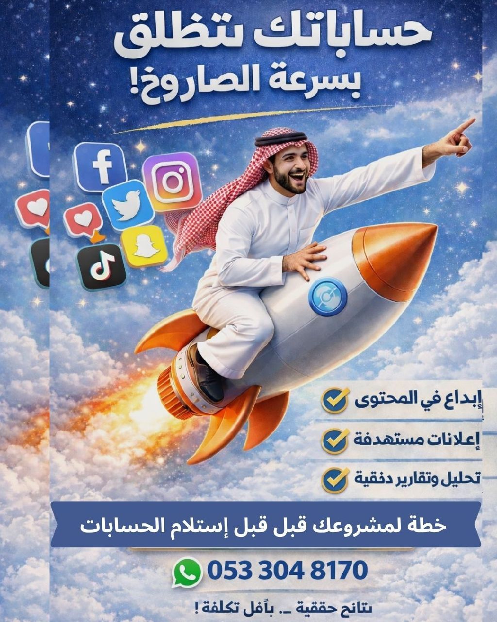 لسه متردد تبدأ على السوشيال ميديا وما زلت تؤجل الحملات الاعلانية بينما غيرك يسبقك ويكسب عملاء جدد كل يوم. التسويق اليوم قائم على التجربة والانتشار، ومن يتحرك أولا يحصل على الحصة الأكبر من السوق. نوفر لك إدارة متكاملة لحساباتك وتشغيل الحملات الاعلانية إدارة حسابات فيسبوك - انستجرام - سناب شات - تيك توك وغيرها اعداد وتشغيل الحملات الاعلانية الممولة انشاء محتوى وتسويق مناسب لنشاطك تصميم منشورات