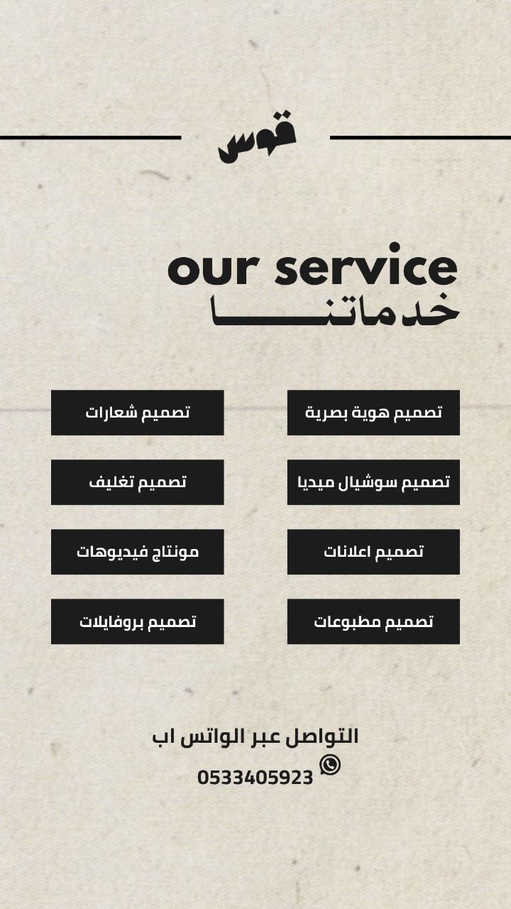 أقدم خدمات تصميم احترافية تشمل هوية بصرية، شعارات، سوشيال ميديا، اعلانات، مطبوعات تغليف، مونتاج فيديوهات، وبروفايلات شركات جودة عالية، تنفيذ سريع، وأسعار مناسبة. للتواصل