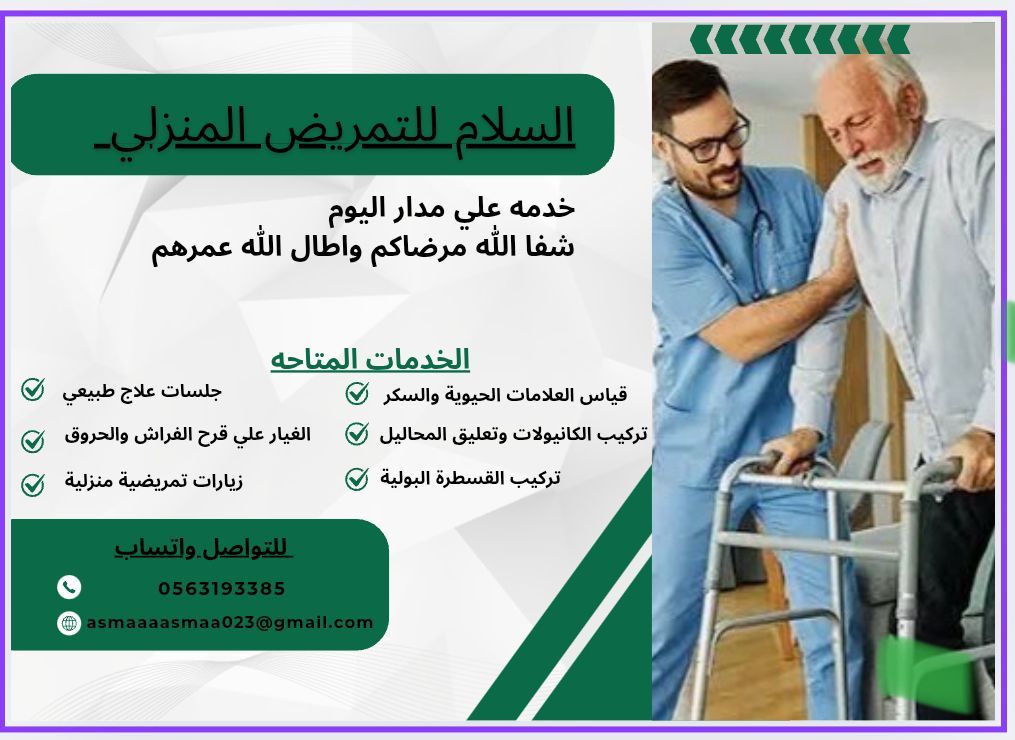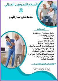 متاح زيارات منزلية ممرضين وممرضات اطلع لدوامك وخليك مطمئن علي مريضك نقدم لكم أفضل خدمة طبية ممكنه أتواصله معنا متوفر لدينا ممرضين وممرضات ومرافقين ومرافقات للعمل بكل أمانة في التمريض المنزلي والمرافقه في المستشفى لديهم خبرات واسعة في مجال التمريض المنزلي لديهم خبرات واسعة في رعاية كبار السن وذي الاحتياجات الخاصه