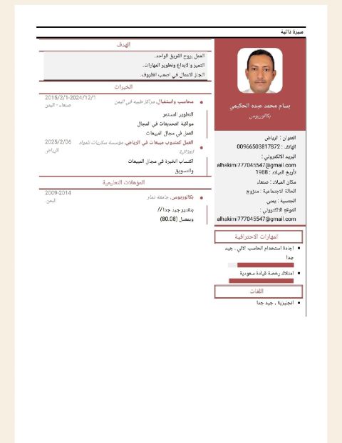 طبيب أسنان متميز خبرة في مجال المبيعات ولدي الخبرة في مجال الحسابات متاح نقل الكفالة وامتلك رخصة قيادة سعودية. مستعد للعمل في أي مجال