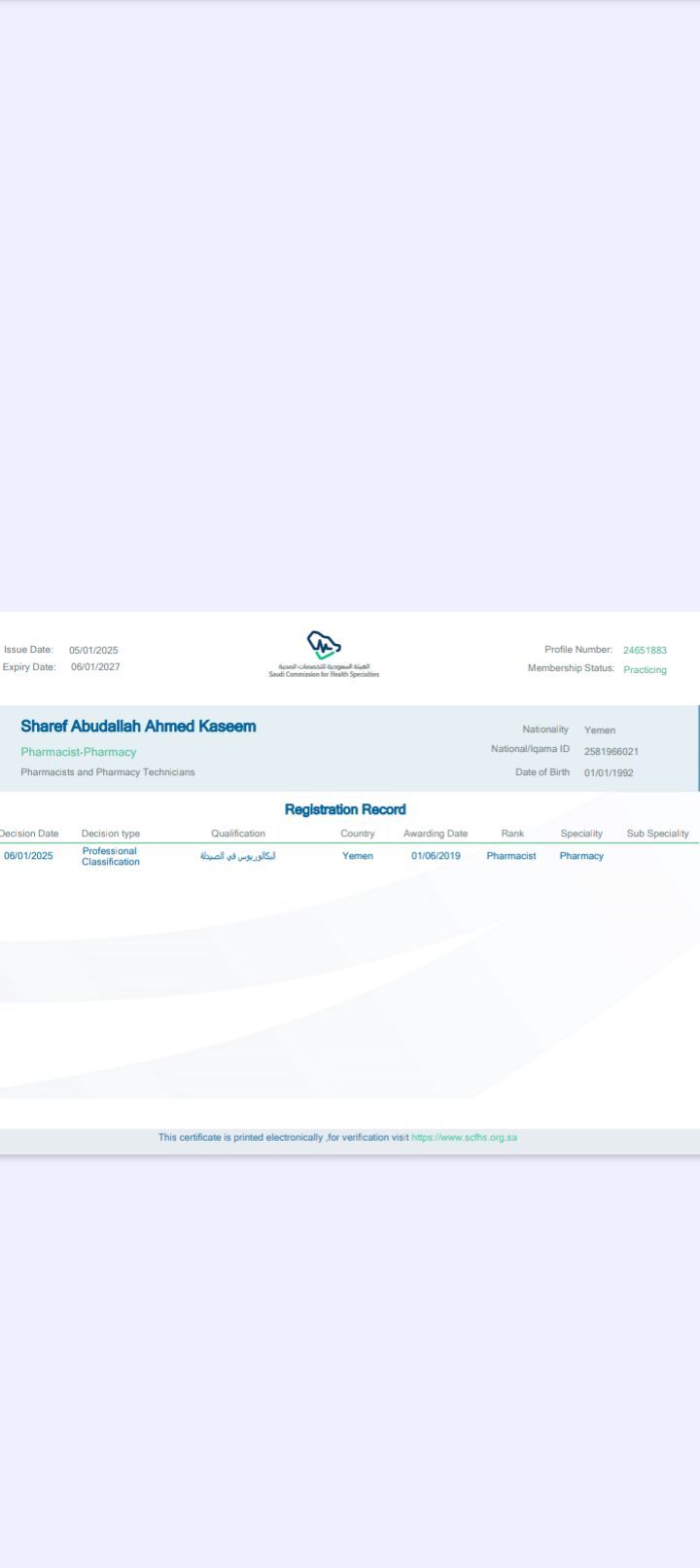 صيدلاني أرغب في العمل جنسيتي يمني خبرة سبع سنوات إدارة صيدليات ومخازن. خبرة عالية في الأنظمة المحاسبة. ترخيص برومترك جاهز حديث. رقمي على الواتساب هو