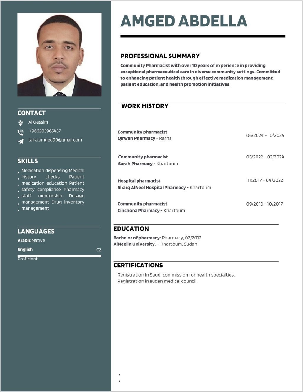 أنا صيدلي لدي ترخيص الهيئة وإقامة قابلة للنقل ولدي خبرة في السعودية وجاهز للعمل في أي منطقة في المملكة