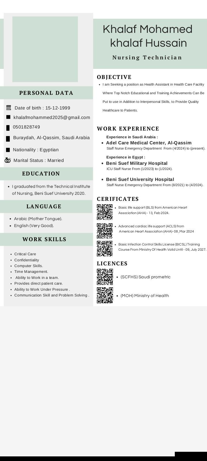 فني تمريض مصنف ابحث عن نقل كفالة خبرة سنتين بالمملكة طوارئ. حاصل على كورس BLS. ACLS. BICSL