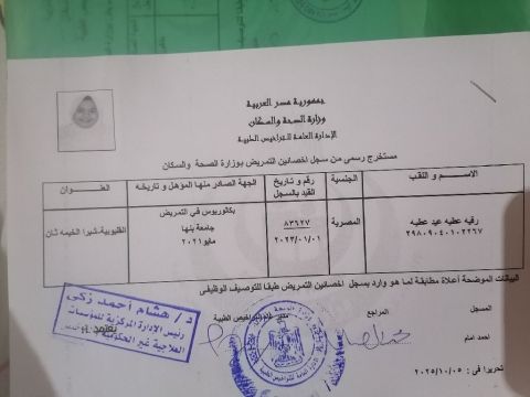 رقية عطية عيد تخرجت سنة 2022 كأخصائية تمريض من جامعة بنها. عملت في مستشفى 57357 بقسم الرعاية المركزة لمدة سنتين وأربعة أشهر، وفي مستشفى صيدناوي بقسم الرعاية المركزة. حاصلة على شهادات BLS وACLS في مكافحة العدوى