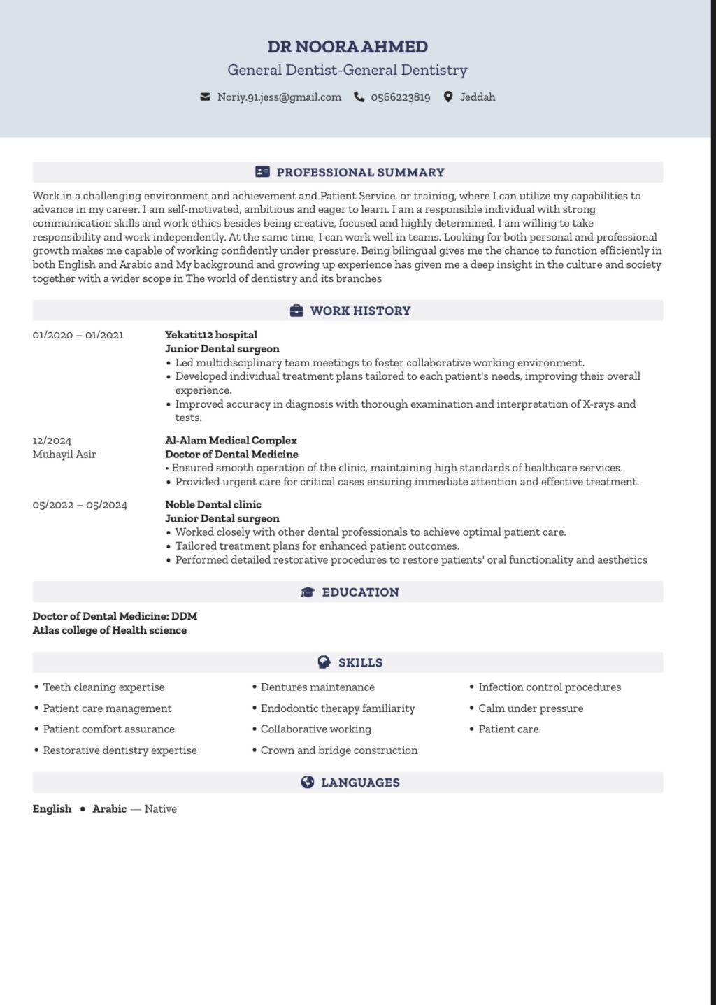 طبيبة أسنان مقيمة في جدة ابحث عن وظيفة عمل امتلك الخبرة والرخصة المهنية الصحية التواصل عبر الرسائل