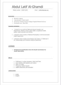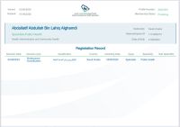 Abdullatif Al - Ghamdi, a graduate from the Department of Public Health, was trained for a year in three facilities 6 months in Hospital 6 in nutrition, infection control, public awareness and health education, 3 months in the Municipality in the Department of Environmental Health, and 3 months in a primary care center in the Department of Preventive Medicine