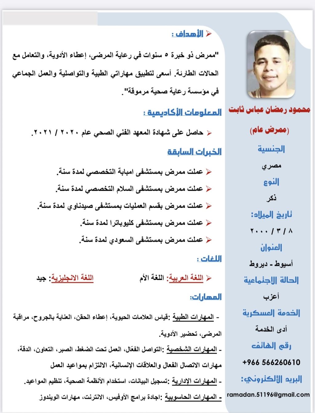 ابحث عن عمل ممرض باحدي مستشفيات أو مستوصفات المملكة ولدي خبرة 5 سنوات في القطاع الحكومي والخاص وليس لدي مانع من نقل الكفالة
