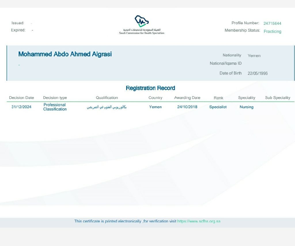 أخصائي تمريض ابحث عن عمل ومتاح للعمل في أي وقت