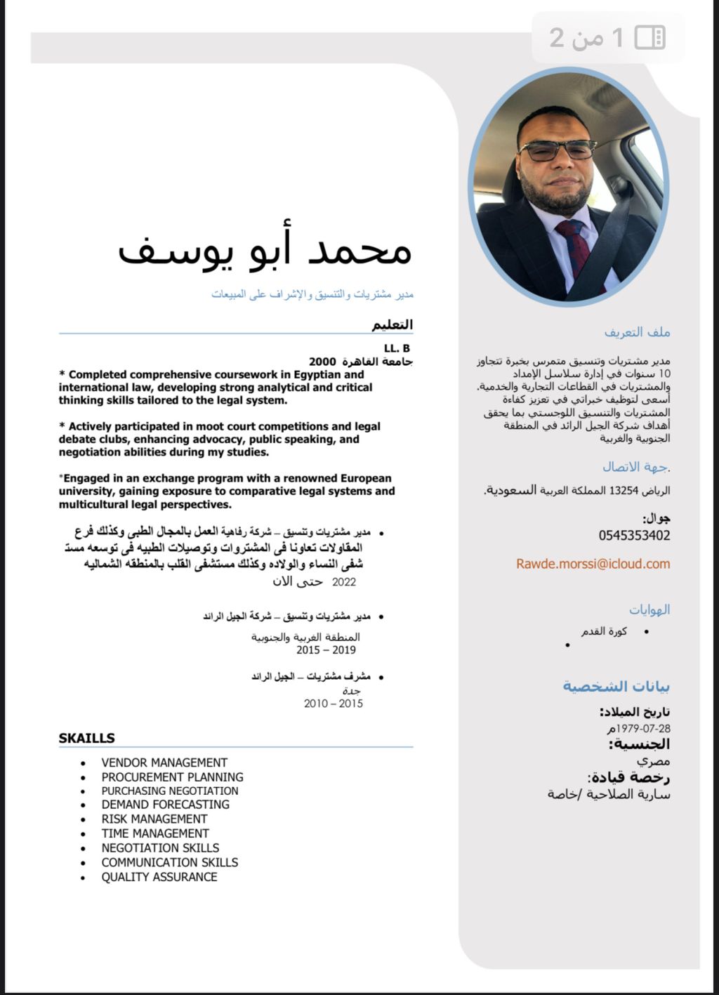 خبرة مميزه تعدت 20 سنة ولدي علاقات بالشركات وجميعهم وكلاء بجميع مناطق المملكة كما لدي خبرة واسعه في النهوض بالشركة من البد أيات أوب عد حدوث ظروف تراجع لأي سبب ما