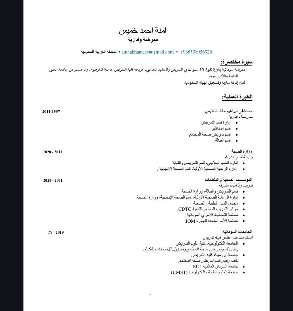 Sudanese Registered Nurse with over 10 years of experience in clinical nursing, supervision, and management. Based in Saudi Arabia with valid SCFHS registration. Available for immediate employment. Full details and contact information are available in the CV