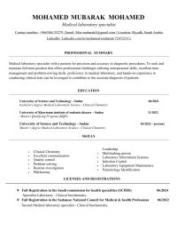 أخصائي مختبرات طبية سوداني. ثلاثه سنوات خبرة في قسم الكيمياء السريرية والهرمونات. ثلاث سنوات خبرة في ضبط جودة الاجهزة المعملية. خبرة في سحب العينات المعملية. خبرة في الفحوصات المعملية الروتينية. أداء عالي ودقة في النتائج. الانضباط والتعلم والسريع