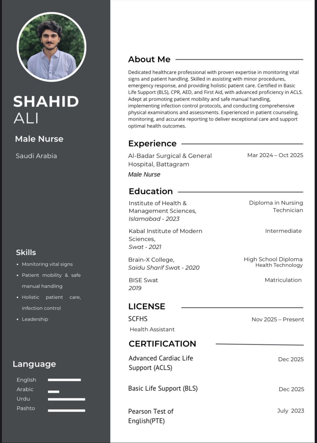 Licensed healthcare professional with Saudi classification, seeking a suitable position in a medical facility. Motivated, patient - focused, and ready to work immediately. Transferable sponsorship if required