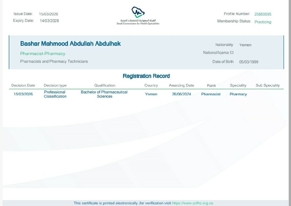 أنا صيدلي خبرة في العمل بالصيدليات ابحث عن فرصة عمل مناسبة لدي الخبرة في صرف الوصفات الطبية والتعامل مع الأمراض ومهارة في خدمة العملاء وزيادة المبيعات لدي تسجيل مهني ساري وإقامة ساري. ومتاح للعمل فورا