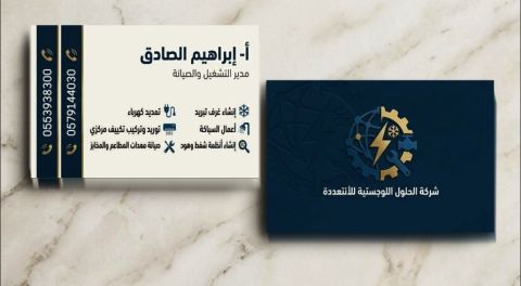 نحن في طور تأسيس شركة الحلول اللوجستية للأنشطة المتعددة، شركة تجمع بين الخبرة، الحرفية، والانجاز على أرض الواقع وليس مجرد كلام على ورق. نقدم مجموعة متكاملة من الخدمات تشمل تمديدات كهربائية باحترافية عالية انشاء غرف تبريد وفق أحدث المعايير تنفيذ وتوصيل التكييف المركزي أعمال السباكة بأنظمة دقيقة تصميم وتنفيذ أنظمة الشفط والهود صيانة وتجهيز معدات المطاعم والمخابز ولدينا فريق عمل قوي ومحترف
