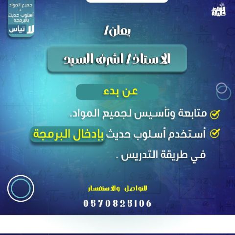 مدرس محاسبة ورياضيات بالنسبة لطلبه الجامعات والثانوية والتدريس وتأسيس لطلبة الابتدائية