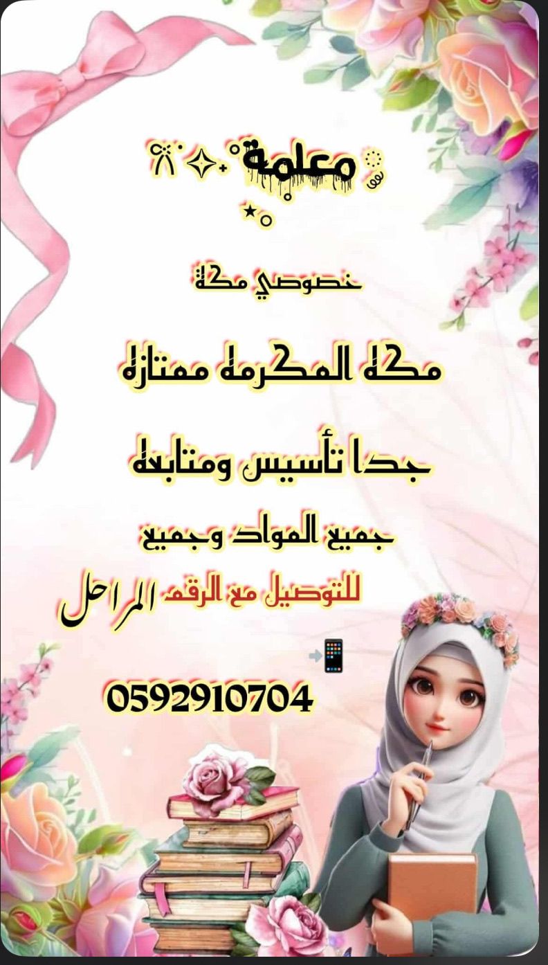 معلمه خصوصية لجميع المراحل تأسيس ومتابعة ومحافظة قرآن الكريم وقاعدة نورانية اطلع للبيت أدرس بالتواصل