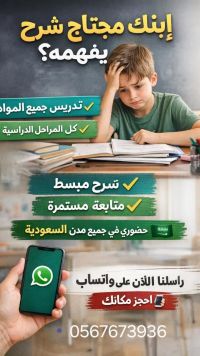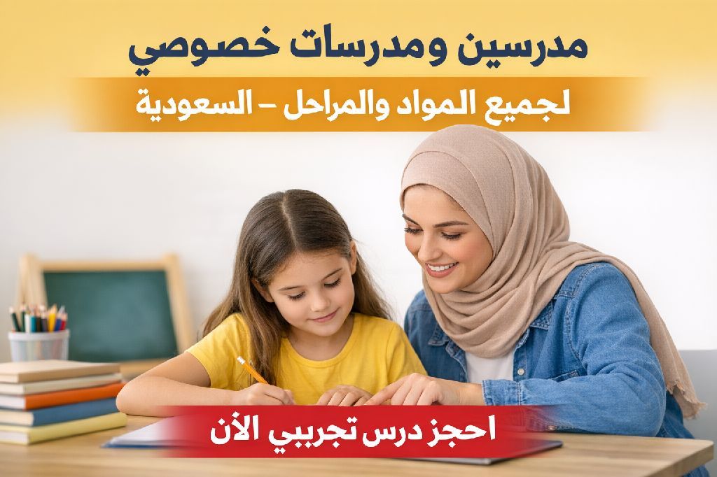 موقع أفضل مدرسين ومدرسات خصوصي في المملكة دروس خصوصية لجميع المواد ولكافة المراحل الدراسية ابتدائي - متوسط - ثانوي مدرسين ومدرسات خبرة وكفاءة عالية متوفر في جميع مناطق المملكة حضوري واونلاين حسب الرغبة تأسيس قوي - شرح مبسط - متابعة مستمرة هدفنا رفع المستوى وضمان أفضل النتائج للحجز والاستفسار تواصل الآن