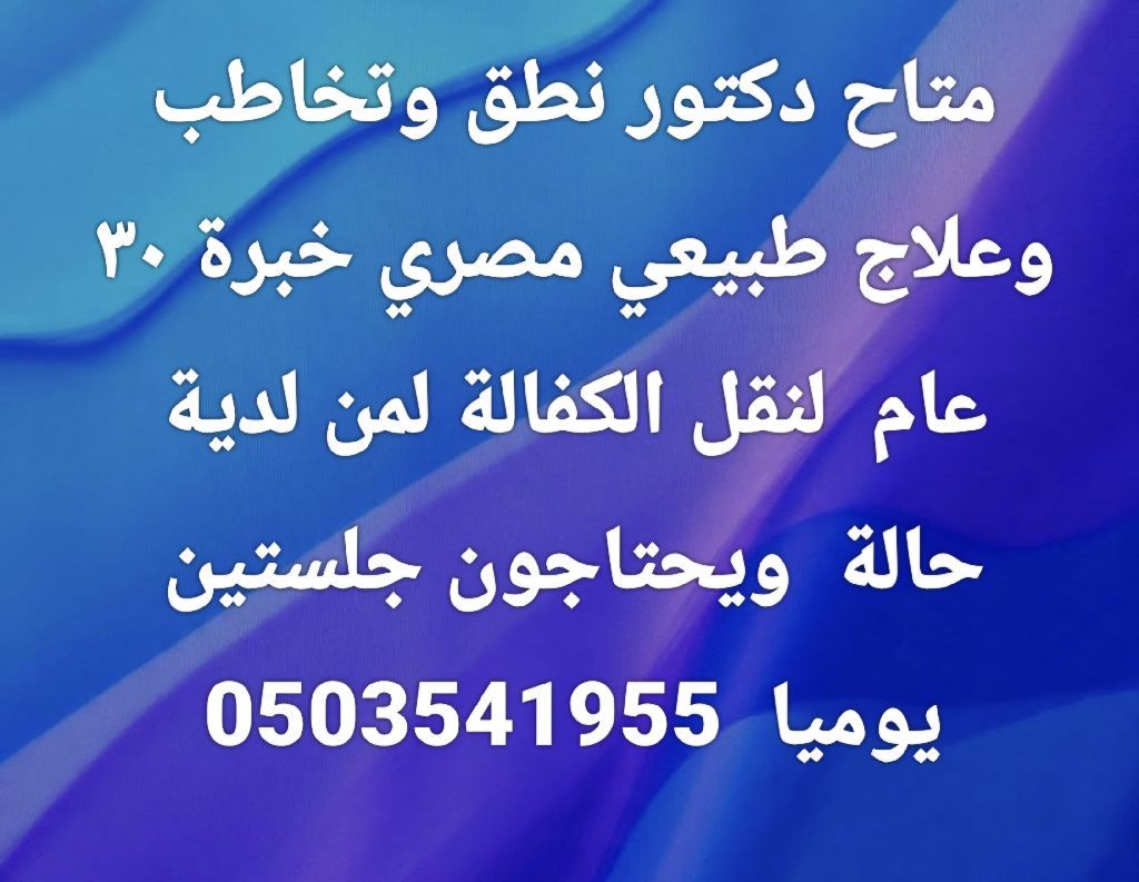 متاح دكتور نطق وتخاطب وعلاج طبيعي مصري خبرة 30 عام لنقل الكفالة لمن لدية حالة ويحتاجون جلستين يوميا