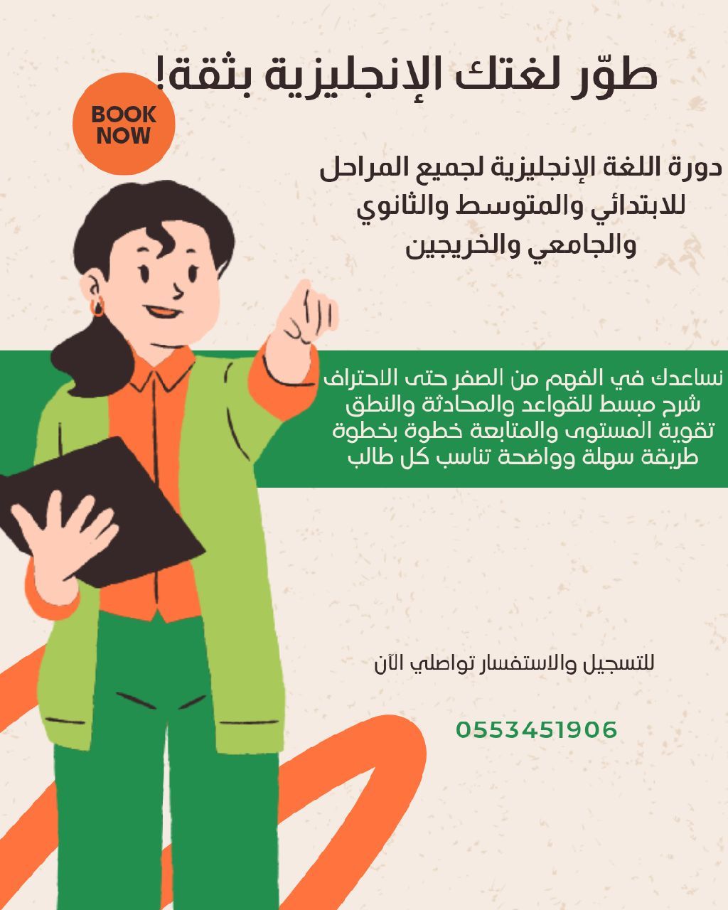 دورة اللغة الانجليزية لجميع المراحل للابتدائي والمتوسط والثانوي والجامعي والخريجين نساعدك في الفهم من الصفر حتى الاحتراف شرح مبسط للقواعد والمحادثة والنطق تقوية المستوى والمتابعة خطوة بخطوة طريقة سهلة وواضحة تناسب كل طالب للتسجيل والاستفسار تواصلي الآن