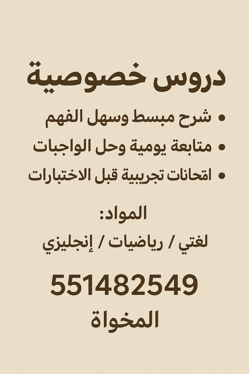 دروس خصوصيه في المخواه شرح مبسط وسهل الفهم المواد لغتي ورياضيات وانجليزي