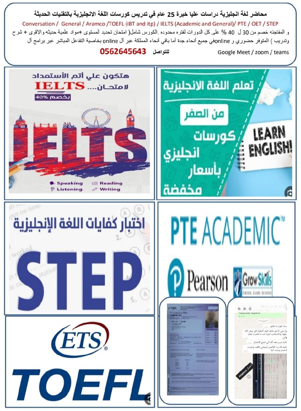 معلم لغة انجليزية دراسات عليا خبرة 25 عام لكل المراحل التعليمية (ابتدائي - متوسط - ثانوي - جامعي) تدريس جميع مواد المدارس العالمية الانترناشونال المنهج البريطاني والأمريكي تدريس كورسات اللغة الانجليزية بالتقنيات الحديثة Conversation / General/ TOEFL (iBT and itp) IELTS (Academic and General) STEP/ PTE/ OET/ Aramco خصم 30% متاح حضوري في جدة أما باقي أنحاء المملكة online للتواصل