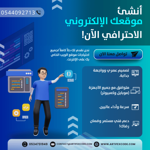 خدمة احترافية لانشاء مواقع الكترونية بأسعار تنافسية هل ترغب في اطلاق موقع الكتروني يعبر عن فكرتك أو مشروعك نقدم لك خدمة انشاء المواقع الالكترونية المتكاملة التي تشمل تصميم عصري وجذاب يلفت الأنظار. سرعة تحميل فائقة وتجربة مستخدم رائعة. قابلية التخصيص لتناسب احتياجاتك الخاصة. متجاوب مع جميع الاجهزة (الهواتف، التابلت، واجهزة الكمبيوتر) تحسين لمحركات البحث (SEO) لضمان ظهورك في نتائج البحث الأولى. سواء