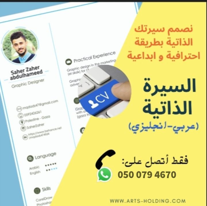 سيرتك الذاتية باحتراف تبدأ من هنا صم منا أكثر من عدد سيرة ذاتية لعملاء باحثين عن التميز الوظيفي أنواع السير الذاتية بالعربي بالانجليزي ثنائية اللغة (عربي + انجليزي) ذات كلمة مفتاحية (ATS) تصاميم احترافية ملونة أو غير ملونة حسب ذوقك قابلة للتعديل اشكال وأنواع مناسبة لكل المجالات لأن سيرتك الذاتية هي أول انطباع عنك، لا تتركها للصدفة للتواصل وطلب الخدمة